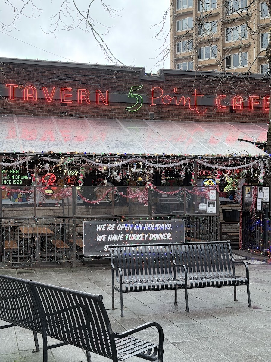Stepping into The 5 Point Café feels like slipping into a cherished Seattle institution where time moves at its own steady, unhurried pace. Nestled on Cedar Street, this spot carries a timeless, slightly gritty charm that feels both familiar and welcoming—a classic local haunt where the energy hums with stories and laughter, and the crowds are as diverse as the city itself. Whether you’re settling in under the dim, eclectic lighting or perched at the bustling bar, there’s a genuine warmth in the air that hints at late-night revelry and morning comfort all at once.